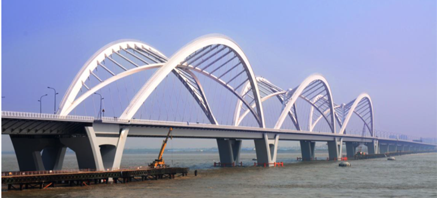 該項目(mù)是杭州市城市總體規劃(2001-2020)中“兩繞三縱五橫(héng)”城市快速路網係統中的重要組成部分,是浙江省重點工程建設項目(mù)。大橋全長1855米,概算總投資10.82億元,主(zhǔ)橋上部結構為3×210m跨徑的(de)連續梁(liáng)-鋼拱組合體係結構橋梁(liáng),鋼結構總重約1.3萬噸,施工采用首創“整體頂推施工”工法,創新了建設理(lǐ)念與施(shī)工技術,多項科研成(chéng)果達(dá)國際領先水(shuǐ)平,體現了(le)全壽命經濟性理念,為推動我國組合結構橋梁的發展做出貢獻。項目榮獲第十一屆中國土木工(gōng)程詹天佑獎、2012-2013年(nián)度中(zhōng)國建設工程魯班獎、全國市政金獎。