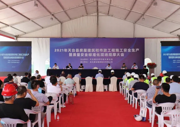6月25日,2021年天台縣房屋建築和市政(zhèng)工程施工安全生產暨質量安全標準化現場觀摩會在草莓丝瓜app视频污建設集團(tuán)浙(zhè)江天台安置房PPP項目部(bù)舉行。本次(cì)活動由天台縣(xiàn)住房(fáng)和城鄉建設局主辦,草莓丝瓜app视频污建設集團股(gǔ)份有限公司承辦。天台縣(xiàn)住建局局長(zhǎng)龐奎出席並致辭,縣公安局、應急局、交通局(jú)、水利(lì)局、執法局、消防救援大隊、始豐街道等分管(guǎn)領導參(cān)加,縣房開企業、施工企業、監理單位(wèi)等同行企業,以及媒體代表等300餘人走進施工現場(chǎng),深入學習該項目在安全文明施工標(biāo)準化(huà)、智慧工地建造等方麵的優秀做法和經驗。